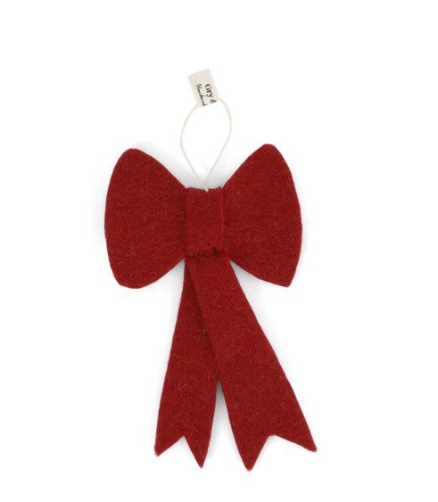 Hand-crafted from natural wool, Gry & Sif's delightful felted characters are brimming with personality and their charm is hard to resist. This lovely Red Bow not only makes a perfect Christmas decoration, but will look good year round and will be loved by all! A delightful ornament to hang on the Christmas tree or displayed somewhere special.