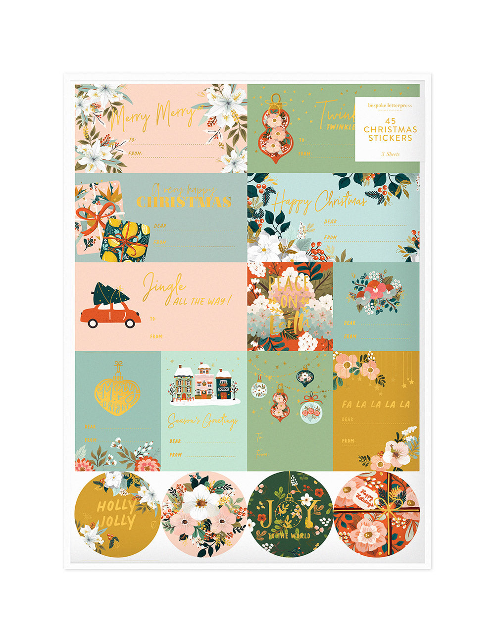 Christmas "Floral Fields" gold foiled adhesive stickers.