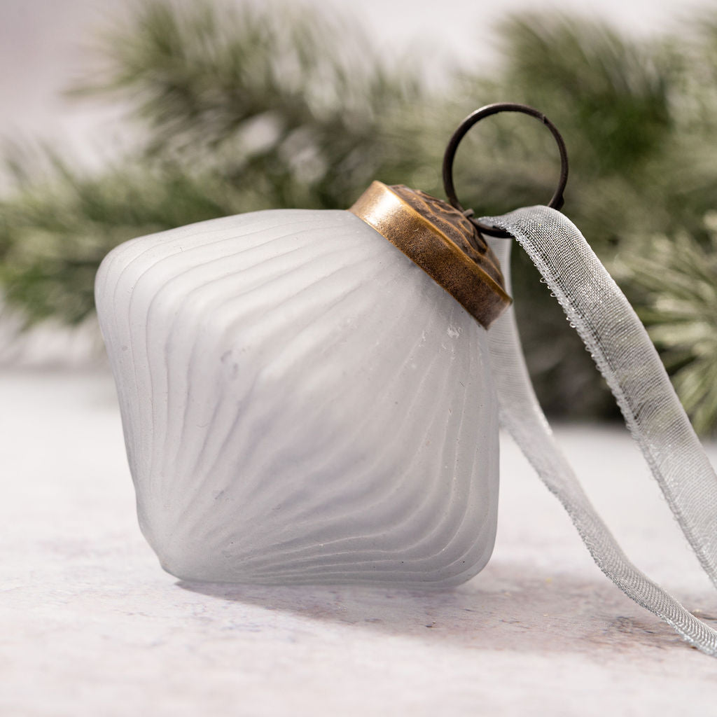Each bauble has an ornately detailed bronze cap and co-ordinating coloured organza tie.