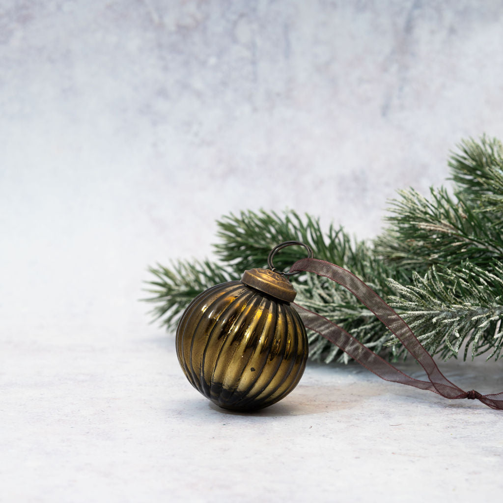 Glass Ribbed Bauble | Olive | Medium