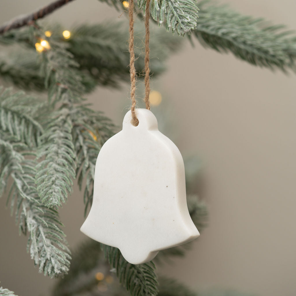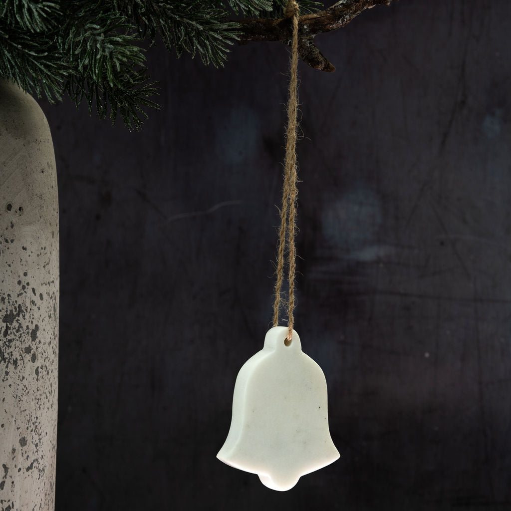 Add a touch of whimsy to your home with our stunning White Marble Hanging Bell Decoration. Each 10cm x 1cm thick star is delicately crafted using traditional methods and sourced from India. Its simple design and Scandi vibes make it the perfect addition to any decor.