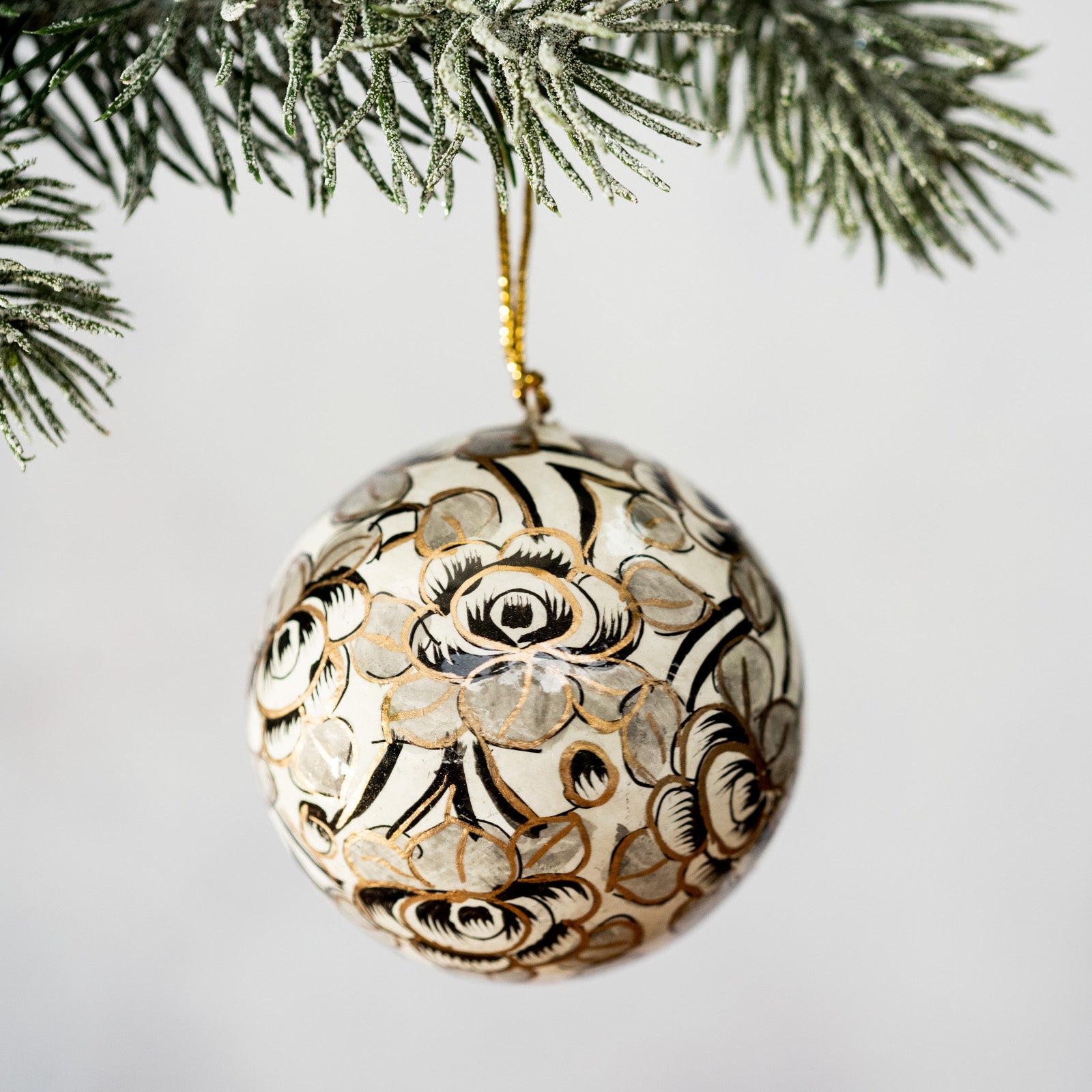 PAPER CHRISTMAS BAUBLE | GREY FLORAL