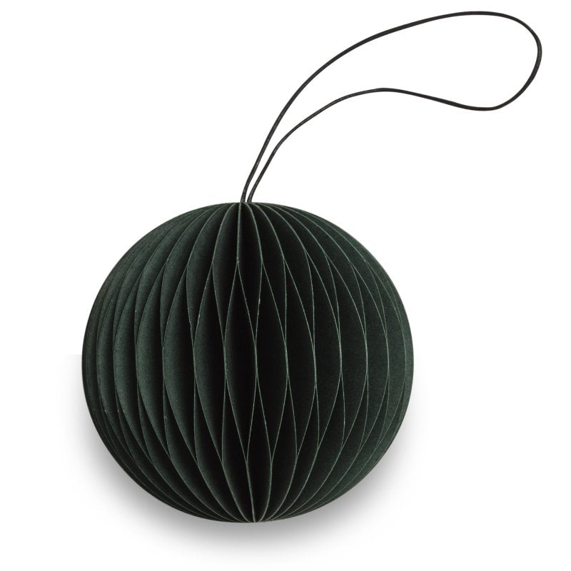 Beautiful paper Christmas ornament in the shape of a circle attached to a black leather string and with a magnetic closing. Easy to fold out and fold in.