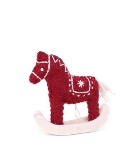 Hand-crafted from natural wool, Gry & Sif's delightful felted characters are brimming with personality and their charm is hard to resist. This rocking horse not only makes a perfect Christmas decoration, but will look good year round and will be loved by all! A delightful ornament to hang on the Christmas tree.