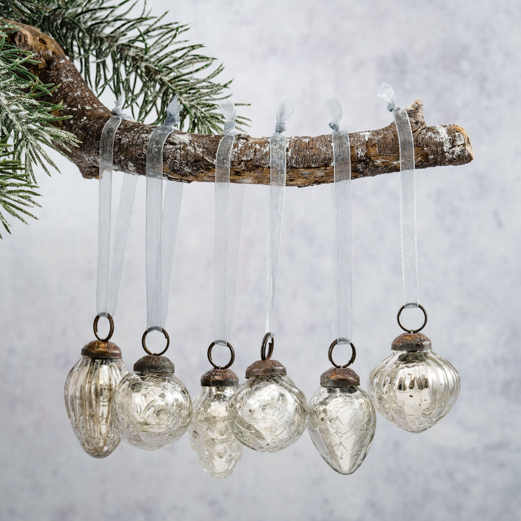 Set of 6 Glass Crackle Baubles | Silver | Small